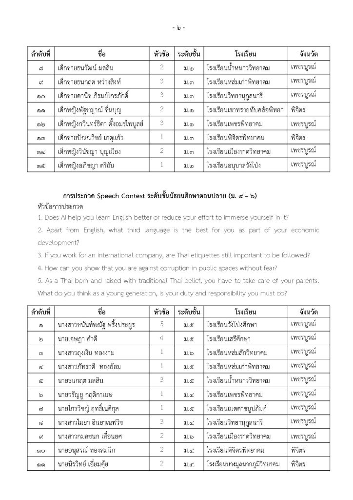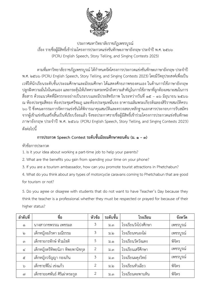 ประกาศรายชื่อผู้มีสิทธิ์เข้าร่วมโครงการประกวดแข่งขัน ทักษะภาษาอังกฤษประจำปี พ.ศ. 2566