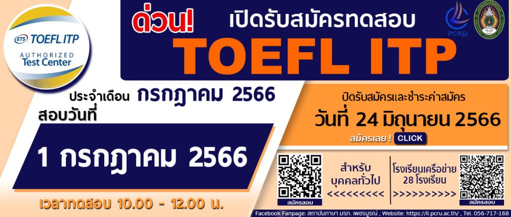 Home » ประกาศ รับสมัครสอบ TOEFL ITP ประจำเดือน กรกฎาคม 2566