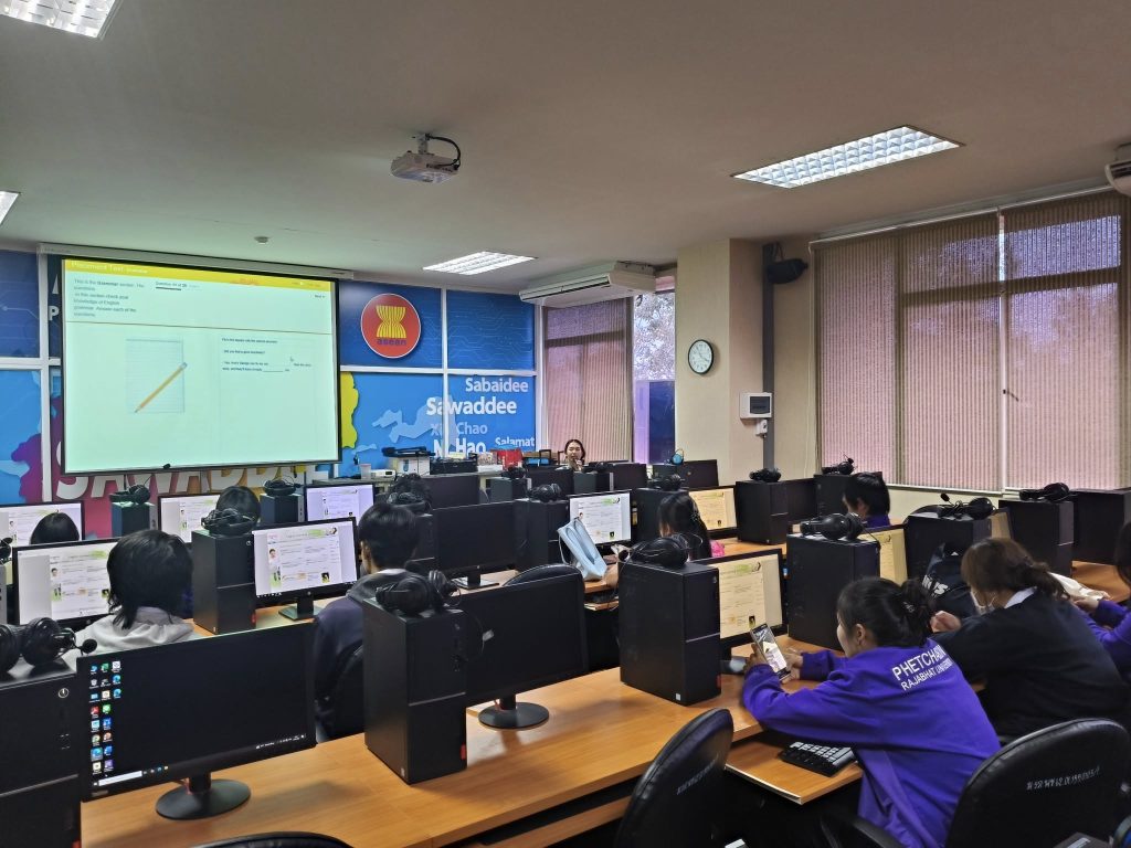 ที่เข้ามารับการฝึกโปรแกรมเรียนรู้ภาษาอังกฤษด้วยตนเองพร้อมมาเก็บชั่วโมงทักษะและทดสอบ English Discoveries Placement Test ณ ห้องโปรแกรม English Discoveries ชั้น 4 อาคารปฏิบัติการทางภาษาและคอมพิวเตอร์ ![]()
