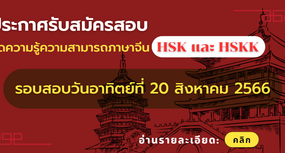 สถาบันขงจื่อเส้นทางสายไหมทางทะเล ศูนย์ทดสอบย่อยมหาวิทยาลัยราชภัฏเพชรบูรณ์ ประกาศรับสมัครสอบวัดระดับภาษาจีน HSK และ HSKK กำหนดจัดสอบ วันอาทิตย์ที่ 20 สิงหาคม 2566 รับสมัครตั้งแต่วันที่ 15 มิถุนายน – วันที่ 19 กรกฎาคม 2566 (16.00 น.) ——————– #รับสมัครจำนวนจำกัด รายละเอียดการรับสมัคร… Read More »ประกาศรับสมัครสอบ HSK & HSKK
