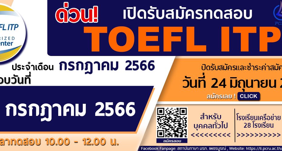 ประกาศ รับสมัครสอบ TOEFL ITP ประจำเดือน กรกฎาคม 2566